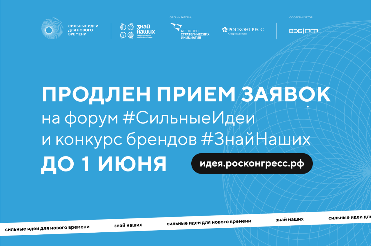 Прием заявок на форум «Сильные идеи для нового времени» и конкурс растущих российских брендов «Знай наших» продлили до 1 июня